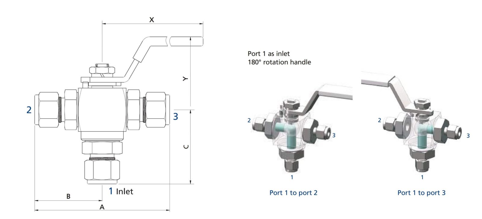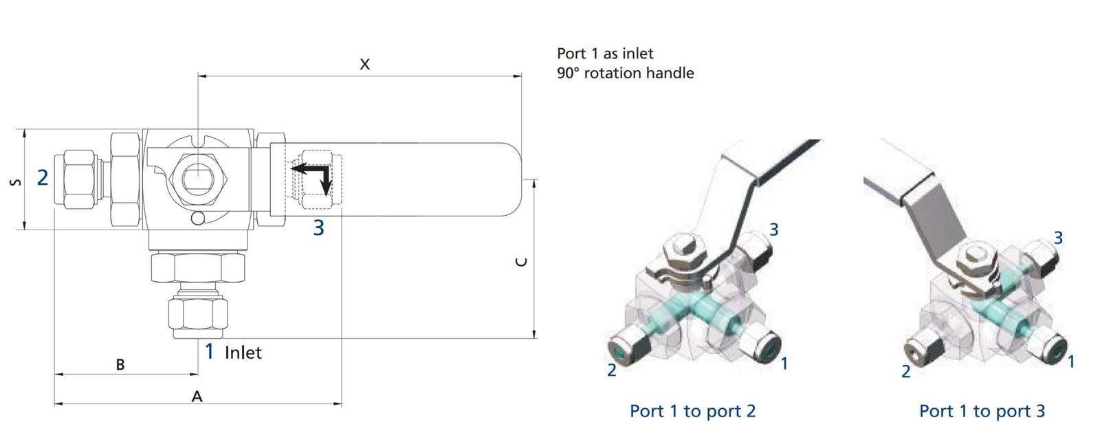 ◉ Restricted flow path for BP series: only port 1 as inlet, port 2 and port 3 as outlet