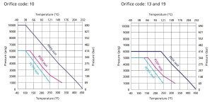 - 2. The working pressure of valves is restricted by the materials of the valve body and seat, as well as the end connections. When choosing a valve for your applications, please refer to the above Temperature vs. Pressure Curves and the pressure rating in the dimension table. The minimum value shall be the pressure rating of the valve.