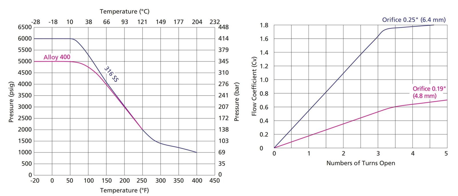 Stainless steel: 6000 psig (414 bar)